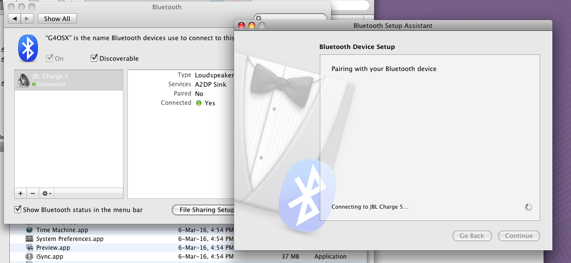 Having a compatible network device is one thing, but how is the pairing? OS X 10.5.8 uses an older version of Bluetooth, v2.1 I think, and modern devices tend to use v5+.