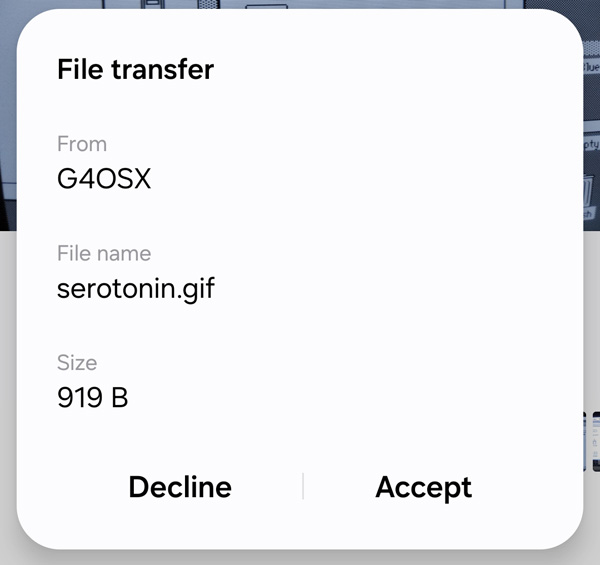 With my Android phone I can send and receive files. Neat!