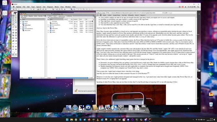 In the past month I've learned how to use QEMU to run OS X on my AMD Ryzen 7 AI 350 based Lenovo laptop, and blog posts can now be written and published directly from a portable system. I won't always do this and can switch to my real Power Mac G4 whenever I like, but I can't deny how much fun and convenient it is to use OS X+Adobe Golive from a portable machine. I hope you can forgive me. :)